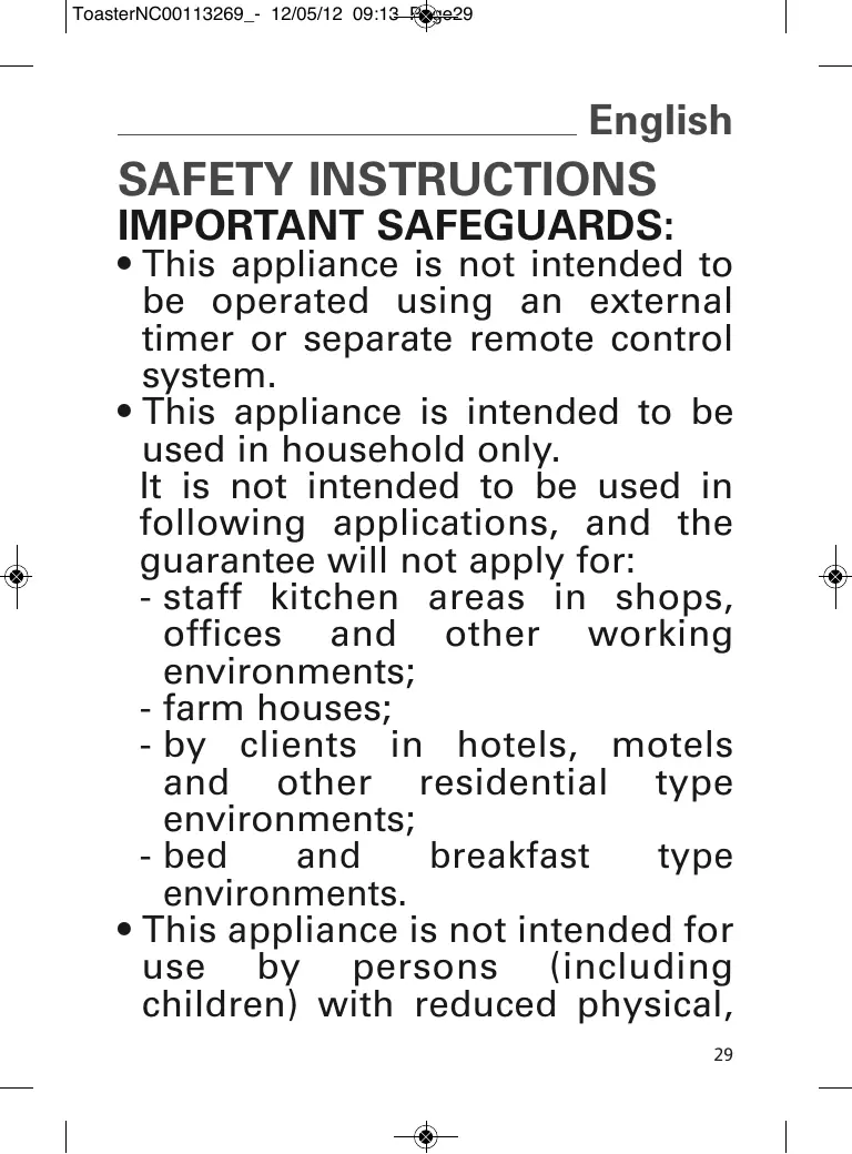 - Close supervision is necessary when the toaster is used by or near children or certain disabled persons who are not familiar with these instructions and should only use this toaster under surveillance of a responsible adult.