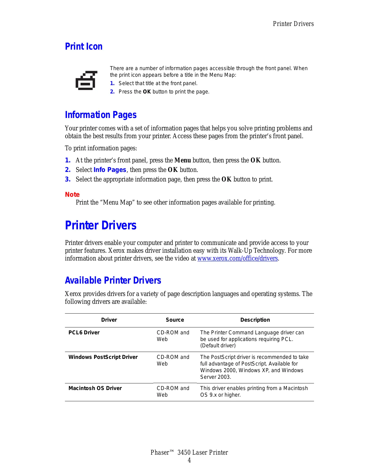 PHASER 3450 - Laser printer XEROX - Free user manual and instructions