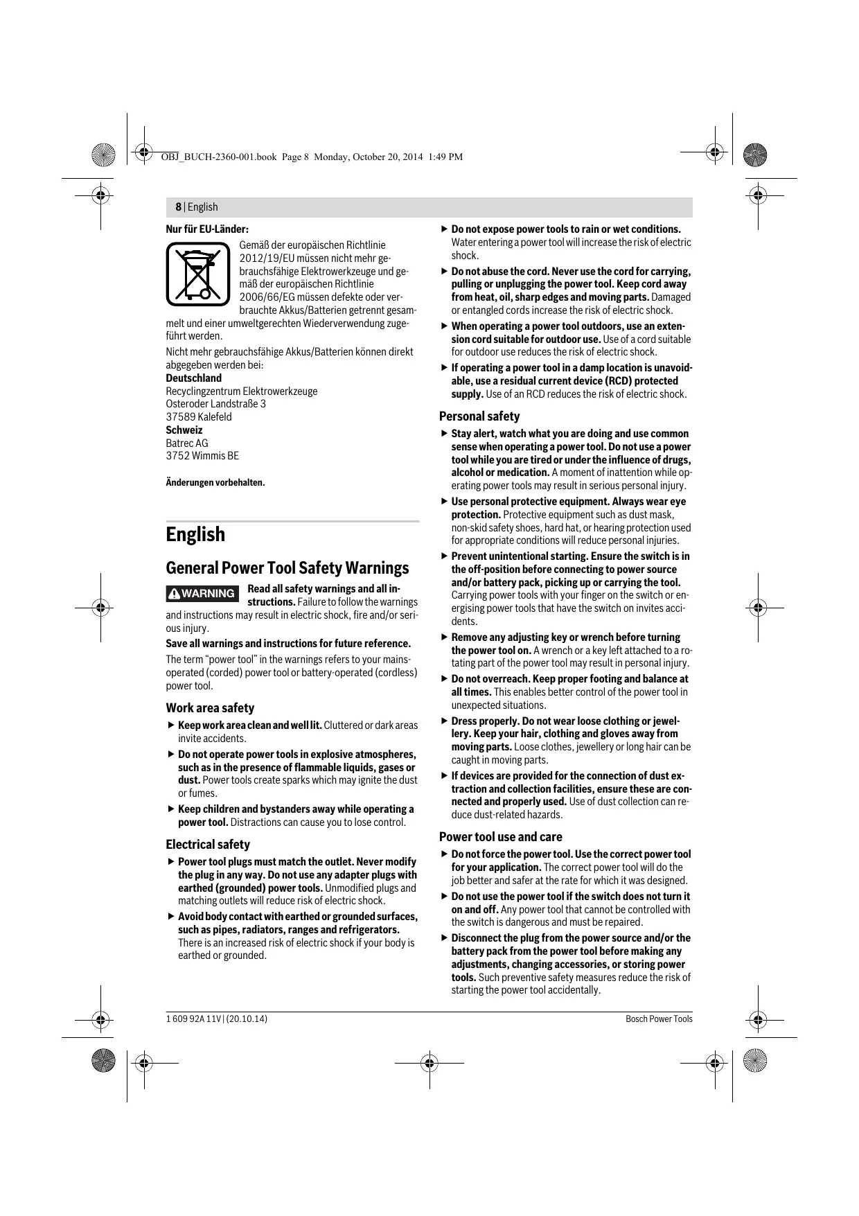 OBJ_BUCH-2360-001.book Page 19 Monday, October 20, 2014 1:49 PM OBJ_BUCH-2360-001.book Page 20 Monday, October 20, 2014 1:49 PM Bosch Power Tools