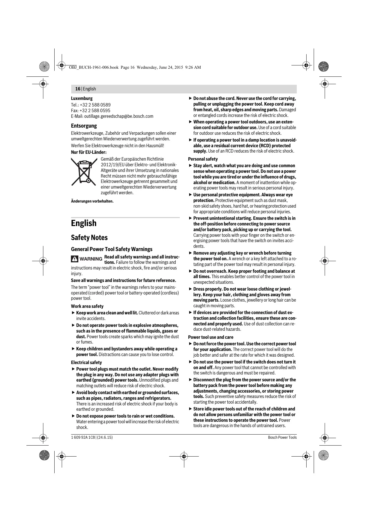 OBJ_BUCH-1961-006.book Page 2 Wednesday, June 24, 2015 9:26 AM Bosch Power Tools OBJ_BUCH-1961-006.book Page 3 Wednesday, June 24, 2015 9:26 AM