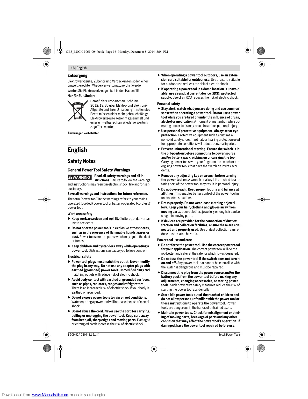 1 609 92A 0S0 | (8.12.14) Downloaded from www.Manualslib.com manuals search engine
