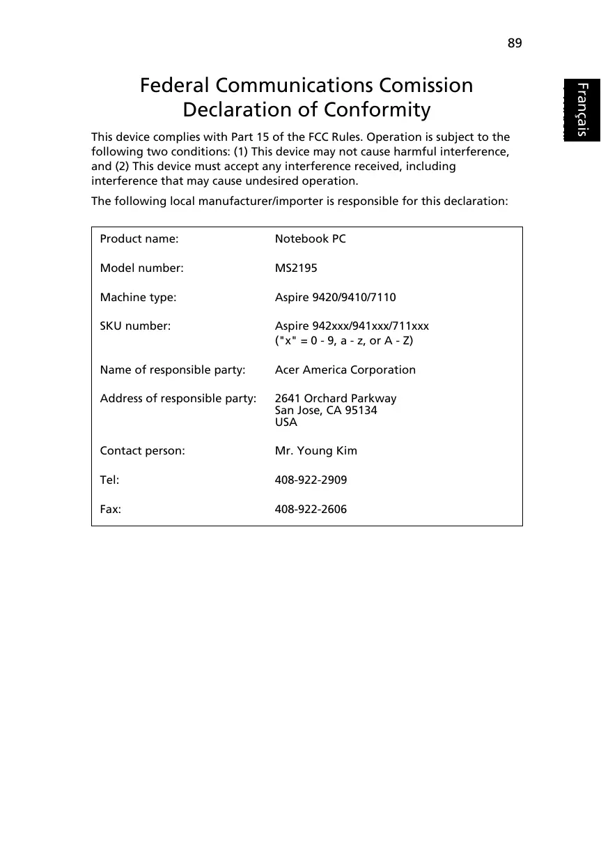 Find the device manual for free ASPIRE 9420 ACER in PDF.