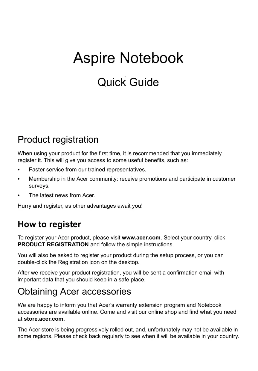 Download the instructions for your Laptop in PDF format for free! Find your manual ASPIRE V5-171 - ACER and take your electronic device back in hand. On this page are published all the documents necessary for the use of your device. ASPIRE V5-171 by ACER.