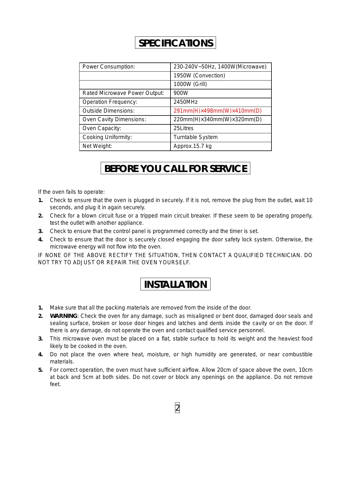 | Power Consumption: | 230-240V~50Hz, 1400W(Microwave) |