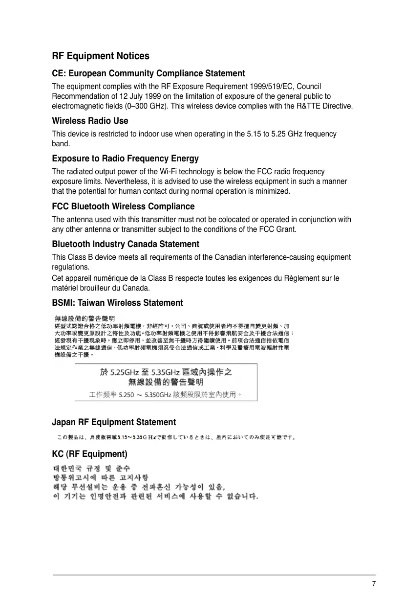 The equipment complies with the RF Exposure Requirement 1999/519/EC, Council Recommendation of 12 July 1999 on the limitation of exposure of the general public to electromagnetic fields (0-300 GHz). This wireless device complies with the R&TTE Directive.