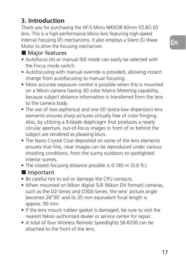 USER MANUAL AF-S MICRO NIKKOR 60MM F-2.8G ED NIKON