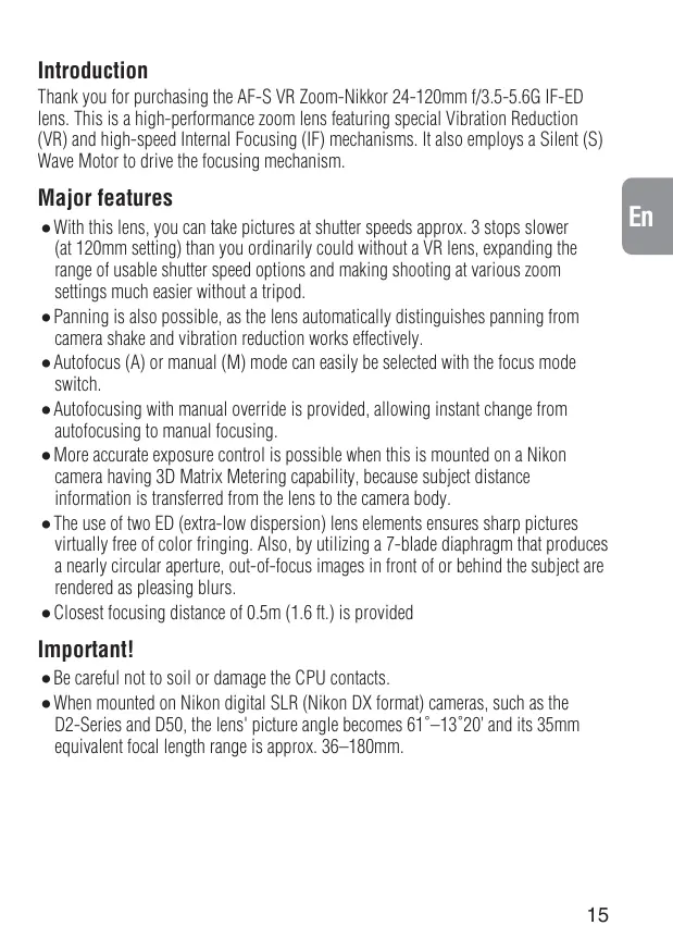USER MANUAL AF-S VR ZOOM-NIKKOR 24-120MM F-3.5-5.6GIF-ED NIKON