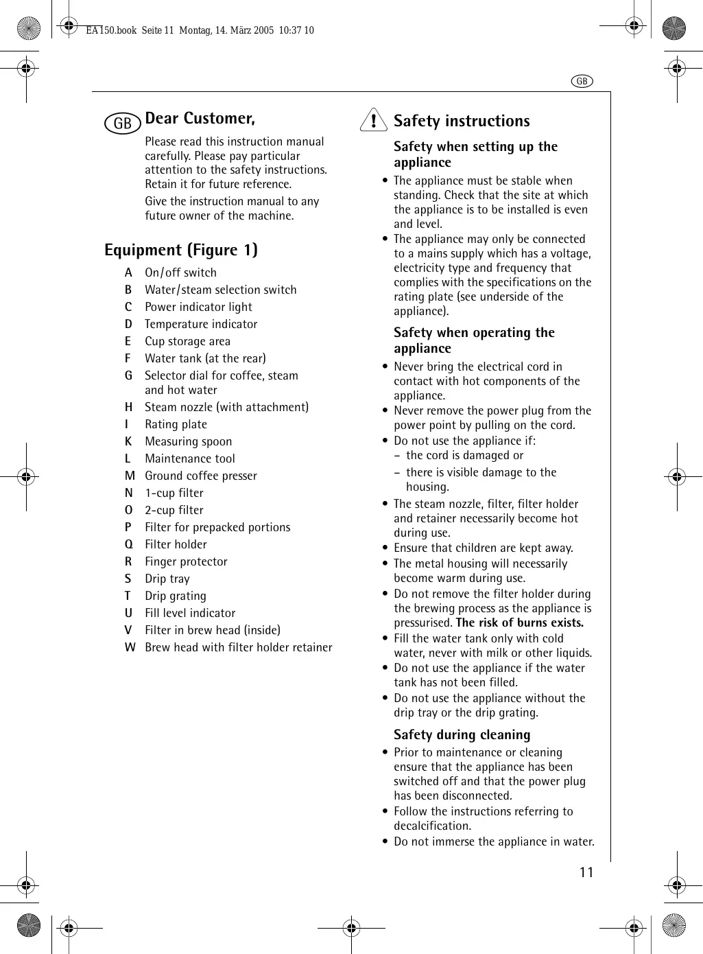 Download the instructions for your Automatic coffee maker in PDF format for free! Find your manual EA150 - AEG-ELECTROLUX and take your electronic device back in hand. On this page are published all the documents necessary for the use of your device. EA150 by AEG-ELECTROLUX.
