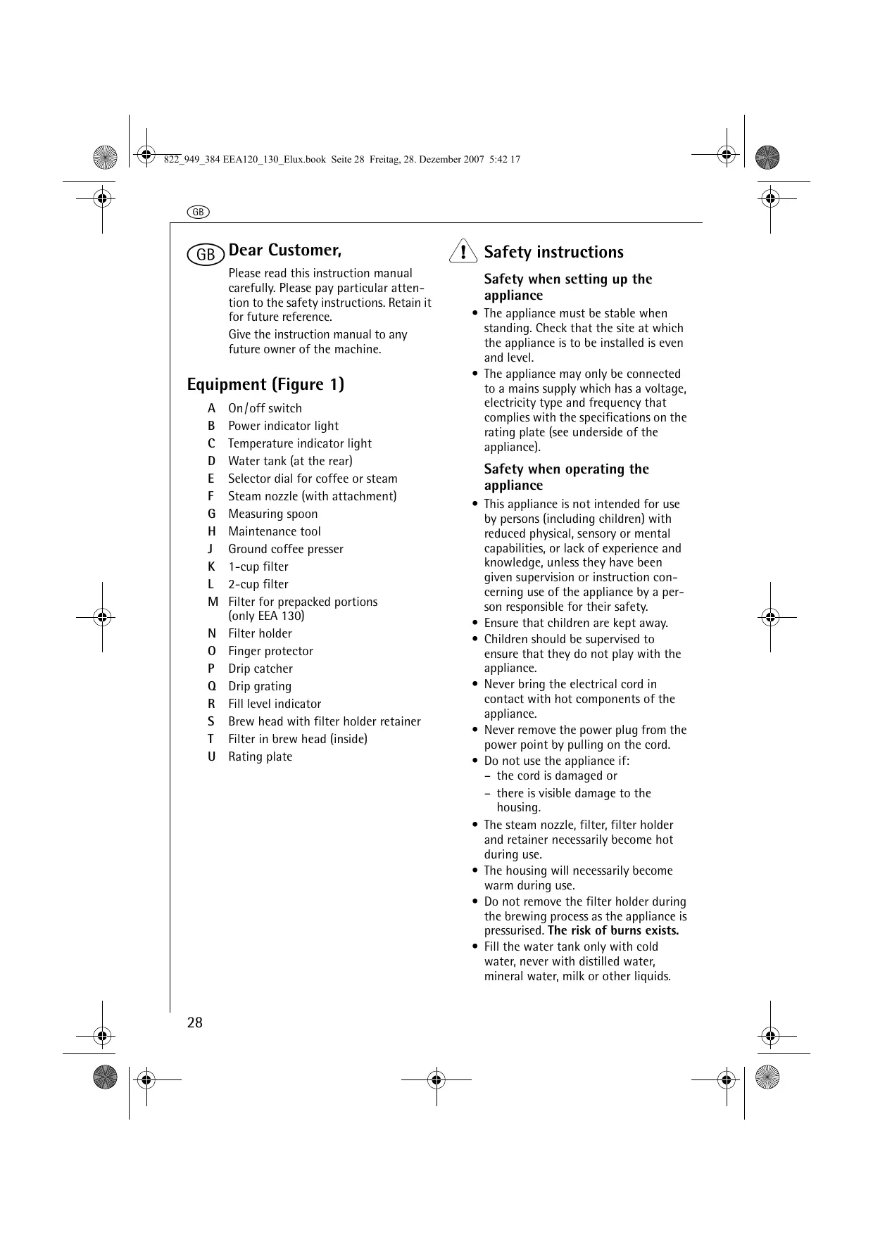 - the flow speed decreases noticeably: – Do not press the espresso grounds too firmly into the filter. – Do not grind the espresso grounds too finely (“medium” fineness). – Decalcify the appliance. 822_949_384 EEA120_130_Elux.book Seite 33 Freitag, 28. Dezember 2007 5:42 17