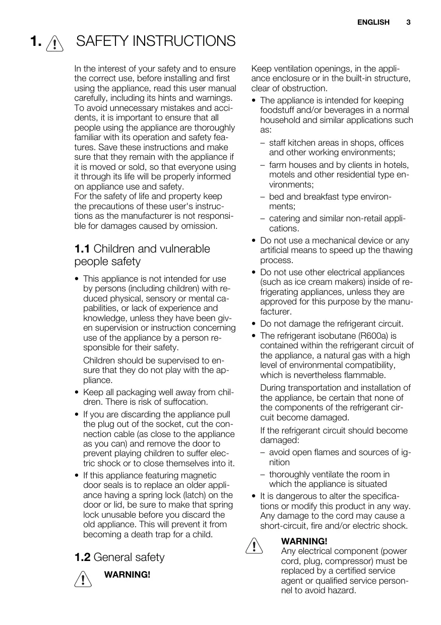 - do not exceed the storage period indicated by the food manufacturer. ENGLISH