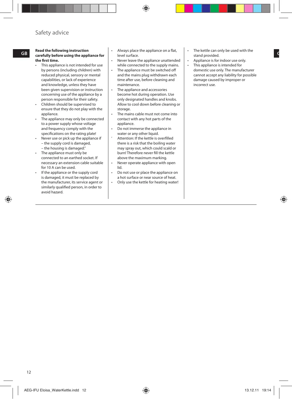 Before using the appliance for the first time, please read the safety advice on page 12 carefully.