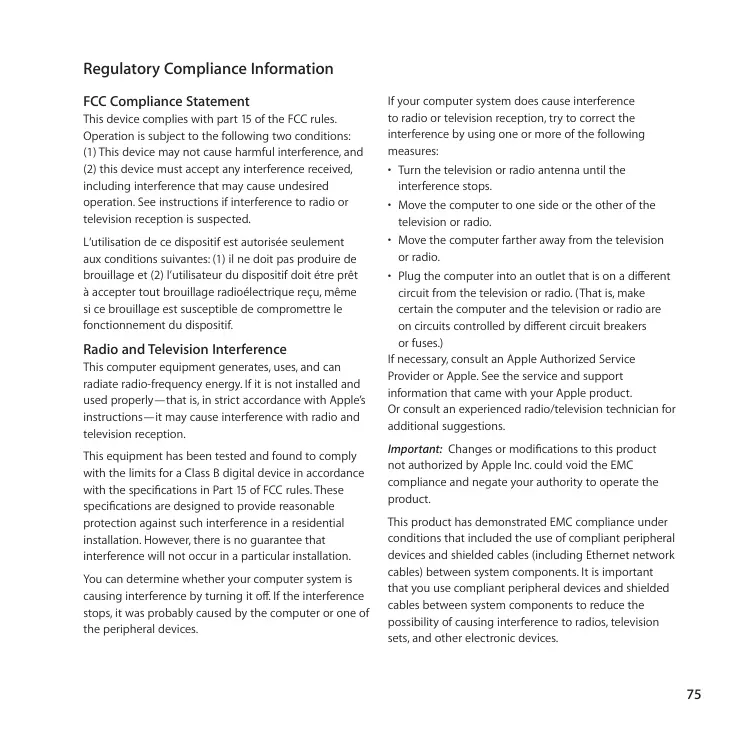 « Informations, services et assistance » à la page 60 afin d’obtenir les informations nécessaires pour prendre contact avec Apple.