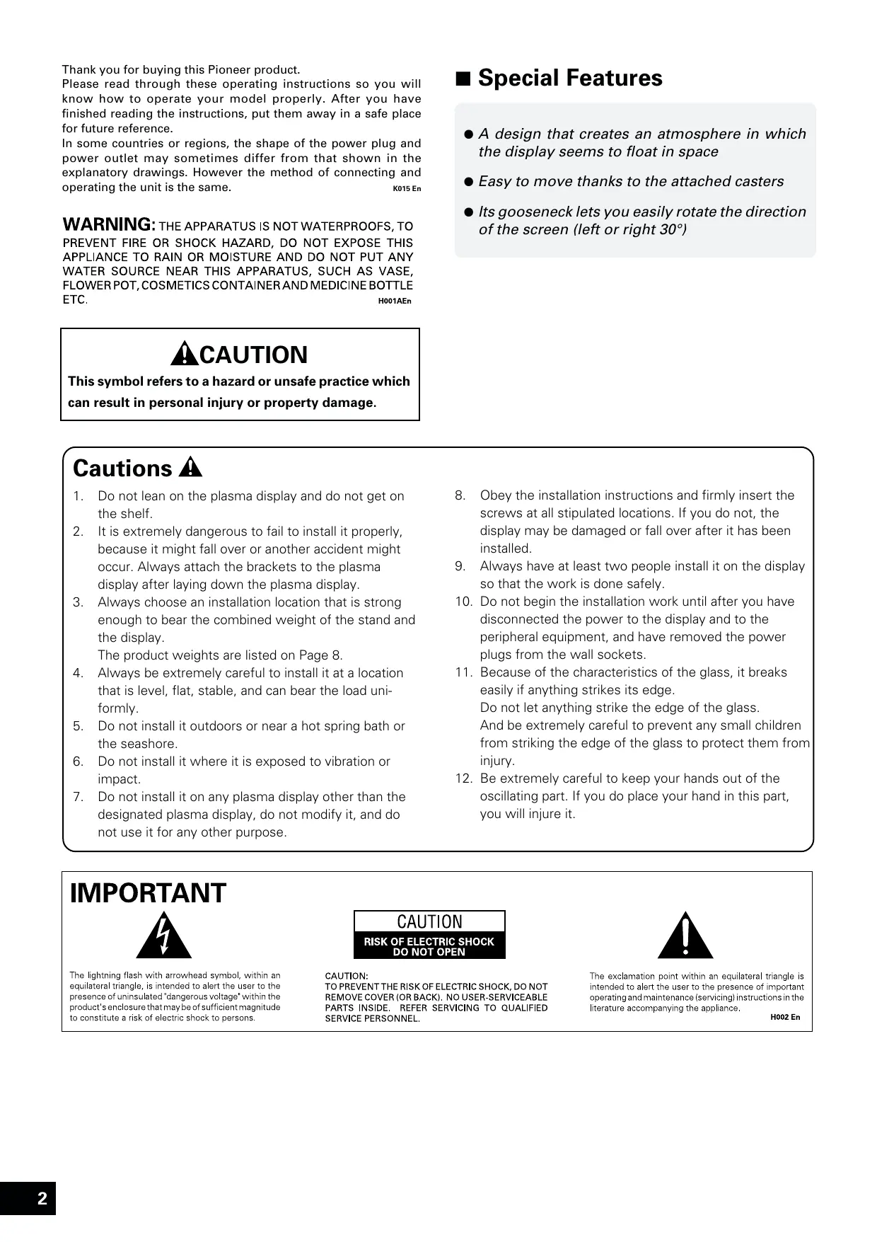 Thank you for buying this Pioneer product. Please read through these operating instructions so you will know how to operate your model properly. After you have finished reading the instructions, put them away in a safe place for future reference. In some countries or regions, the shape of the power plug and power outlet may sometimes differ from that shown in the explanatory drawings. However the method of connecting and operating the unit is the same. K015 En
