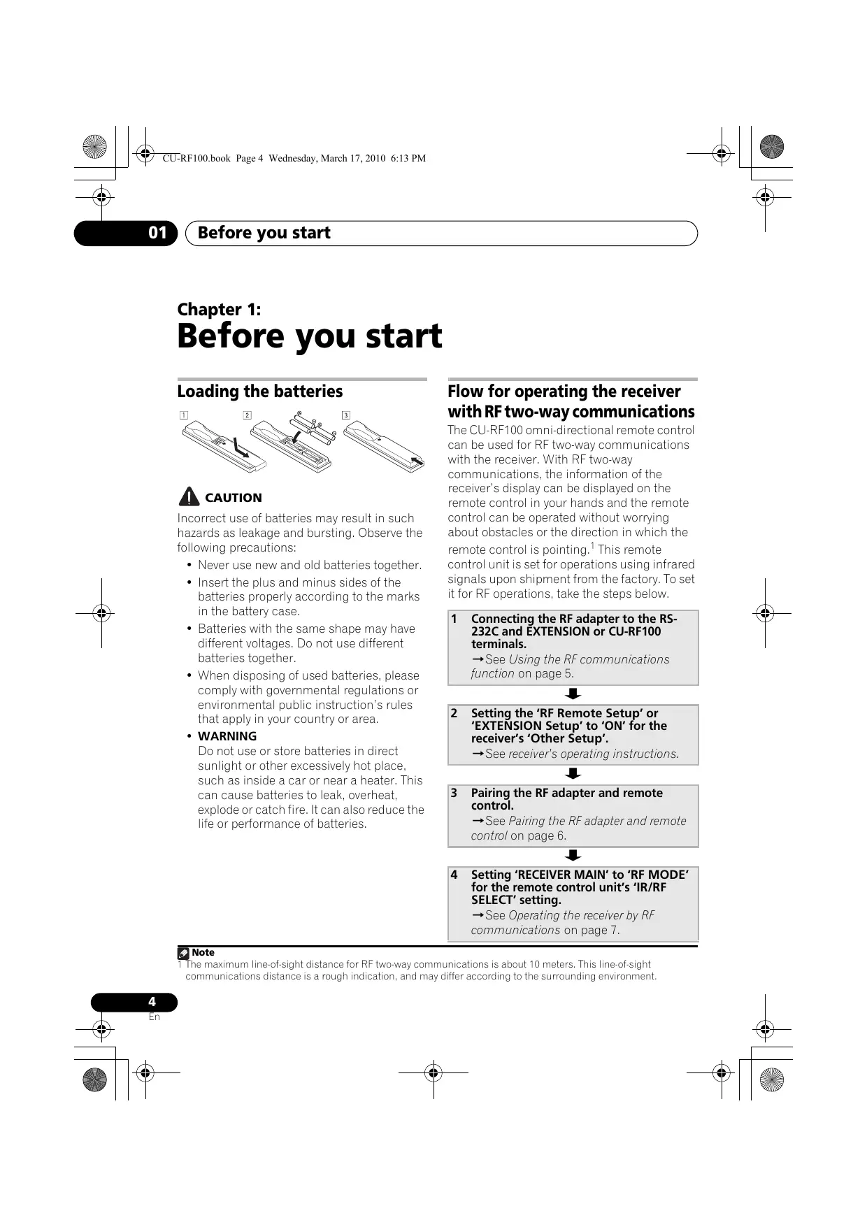 Precautions when using the Omni-Directional RF Remote Control. 10