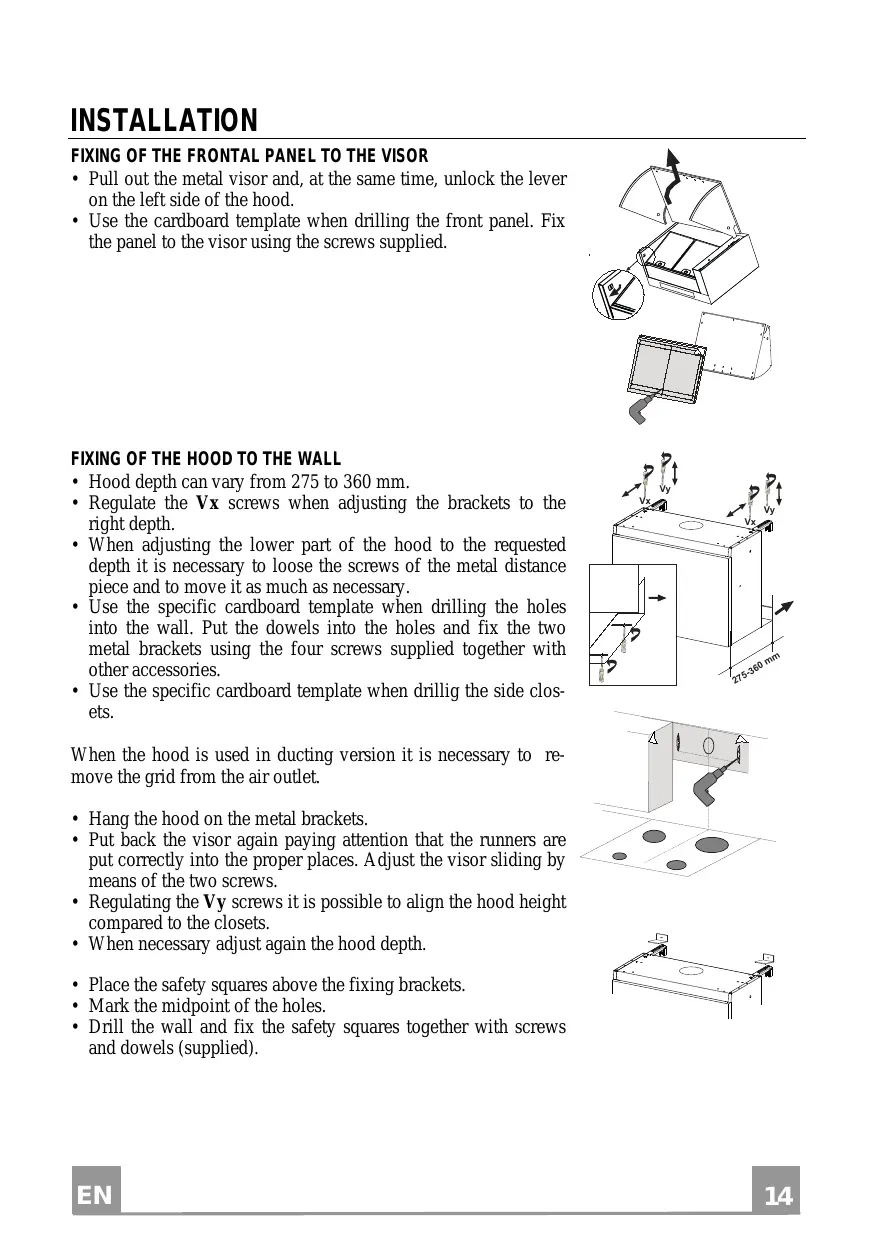 - Regulating the Vy screws it is possible to align the hood height compared to the closets.
