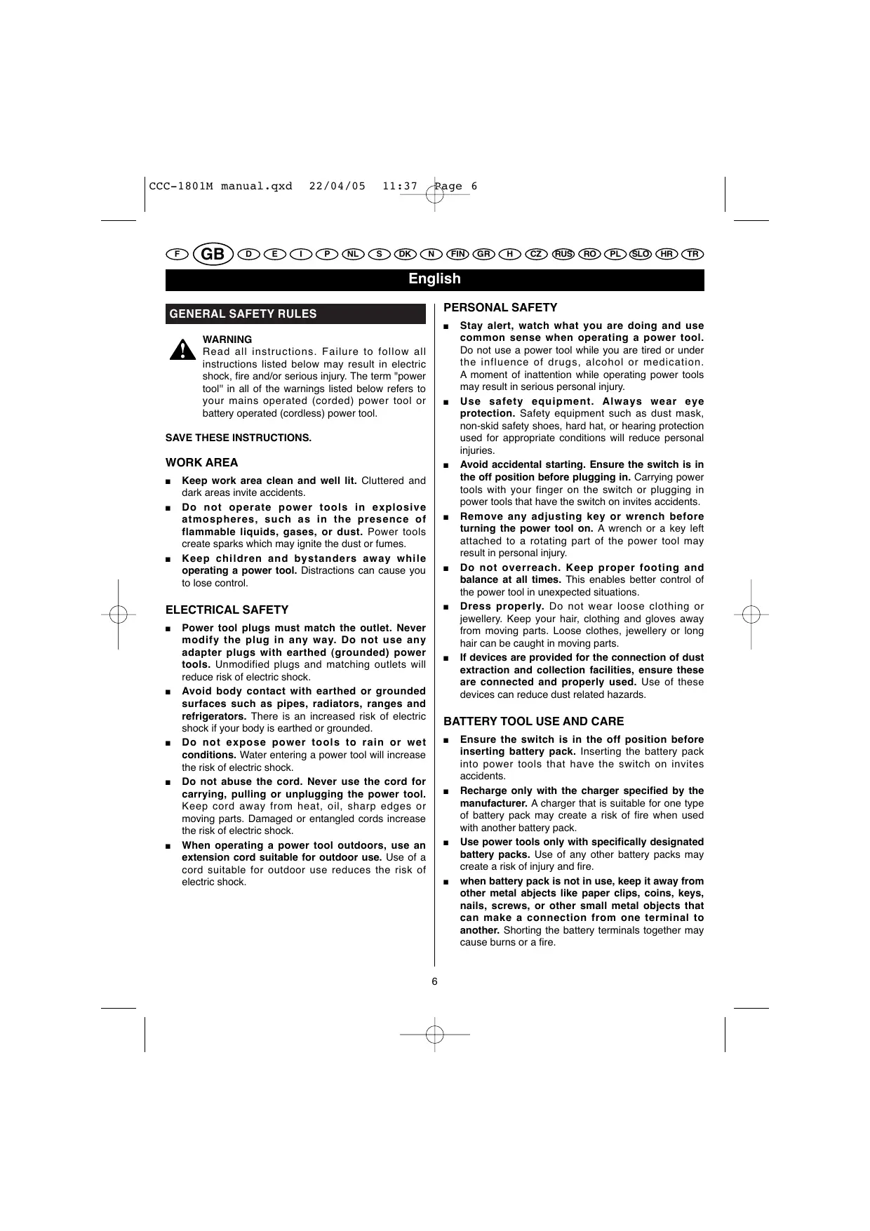 Download the instructions for your in PDF format for free! Find your manual CCC1801M - RYOBI and take your electronic device back in hand. On this page are published all the documents necessary for the use of your device. CCC1801M by RYOBI.