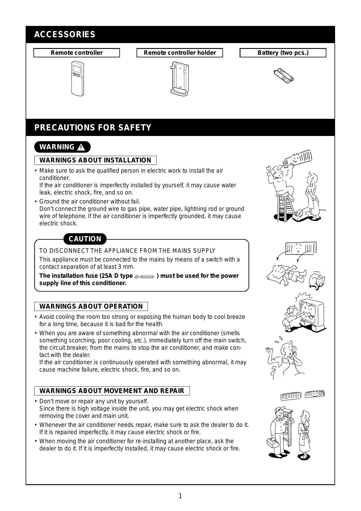 - Make sure to ask the qualified person in electric work to install the air conditioner.