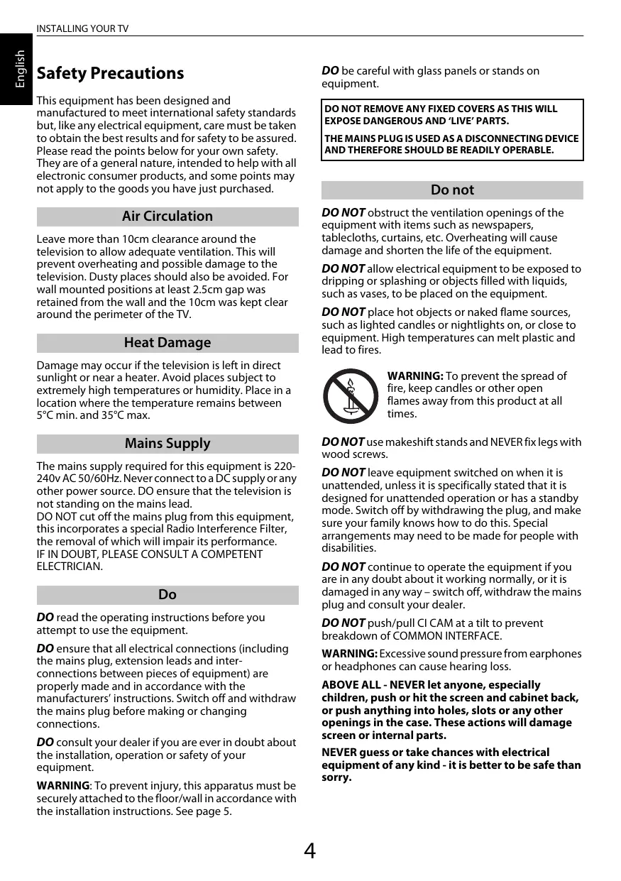 INSTALLING YOUR TV Safety Precautions … Installation and important information The remote control …