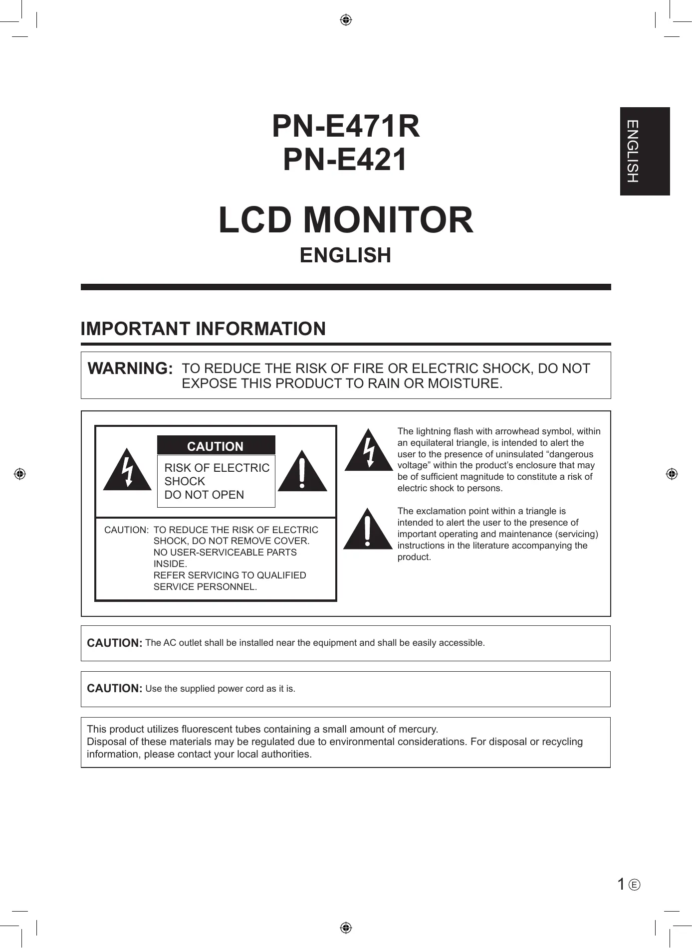 Find the device manual for free PN-E421 SHARP in PDF.