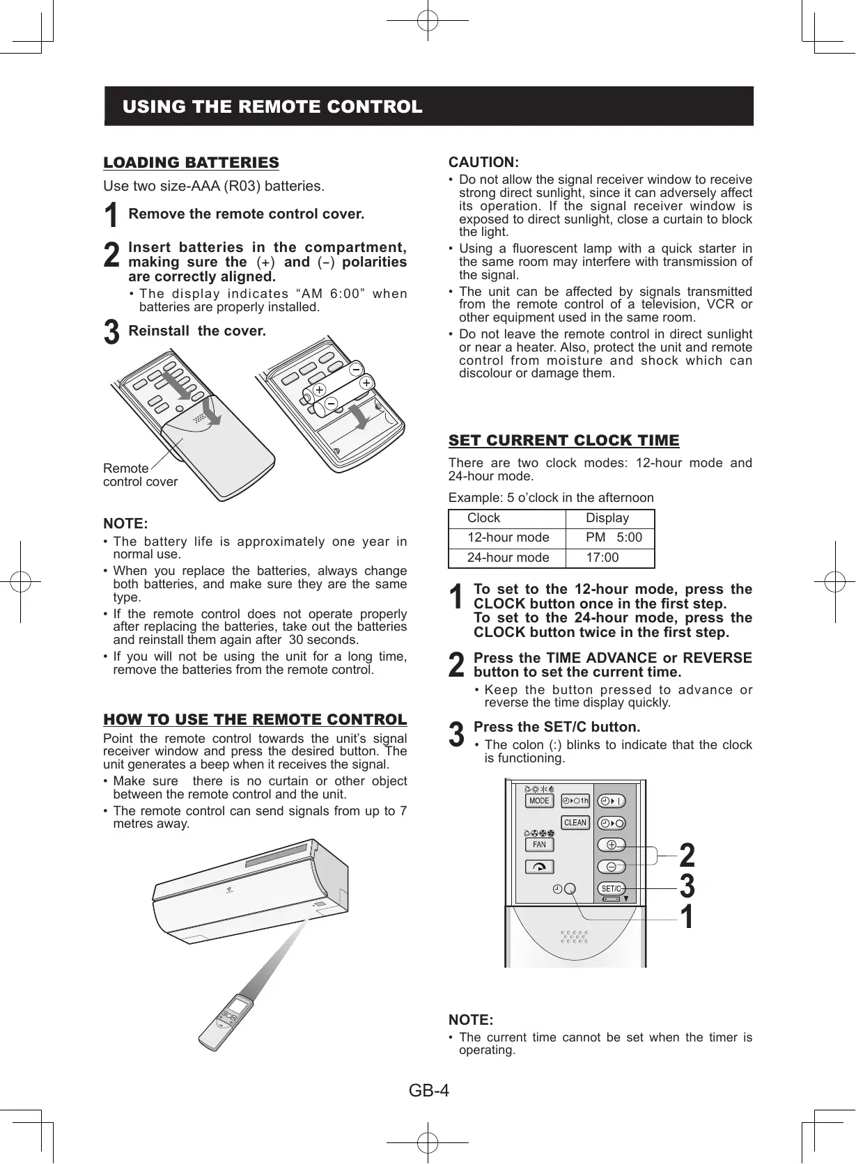 • IMPORTANT SAFETY INSTRUCTIONS GB-1 • PART NAMESGB-2 • USING THE REMOTE CONTROL GB-4 • SETTING AIR PURIFYING FILTER GB-5 • TIPS ON SAVING ENERGYGB-5 • AUXILIARY MODE GB-5 • BASIC OPERATION GB-6 • TIPS ABOUT INDICATOR PANELGB-7 • ADJUSTING THE AIR FLOW DIRECTION ...GB-8 • PLASMACLUSTER OPERATION GB-9 • SELF CLEAN OPERATIONGB-9 • ONE-HOUR OFF TIMER GB-10 • TIMER OPERATION GB-10 • FULL POWER OPERATION GB-12 • MAINTENANCE GB-12 • BEFORE CALLING FOR SERVICE GB-14 • ADDITIONAL NOTES ON OPERATION GB-15
