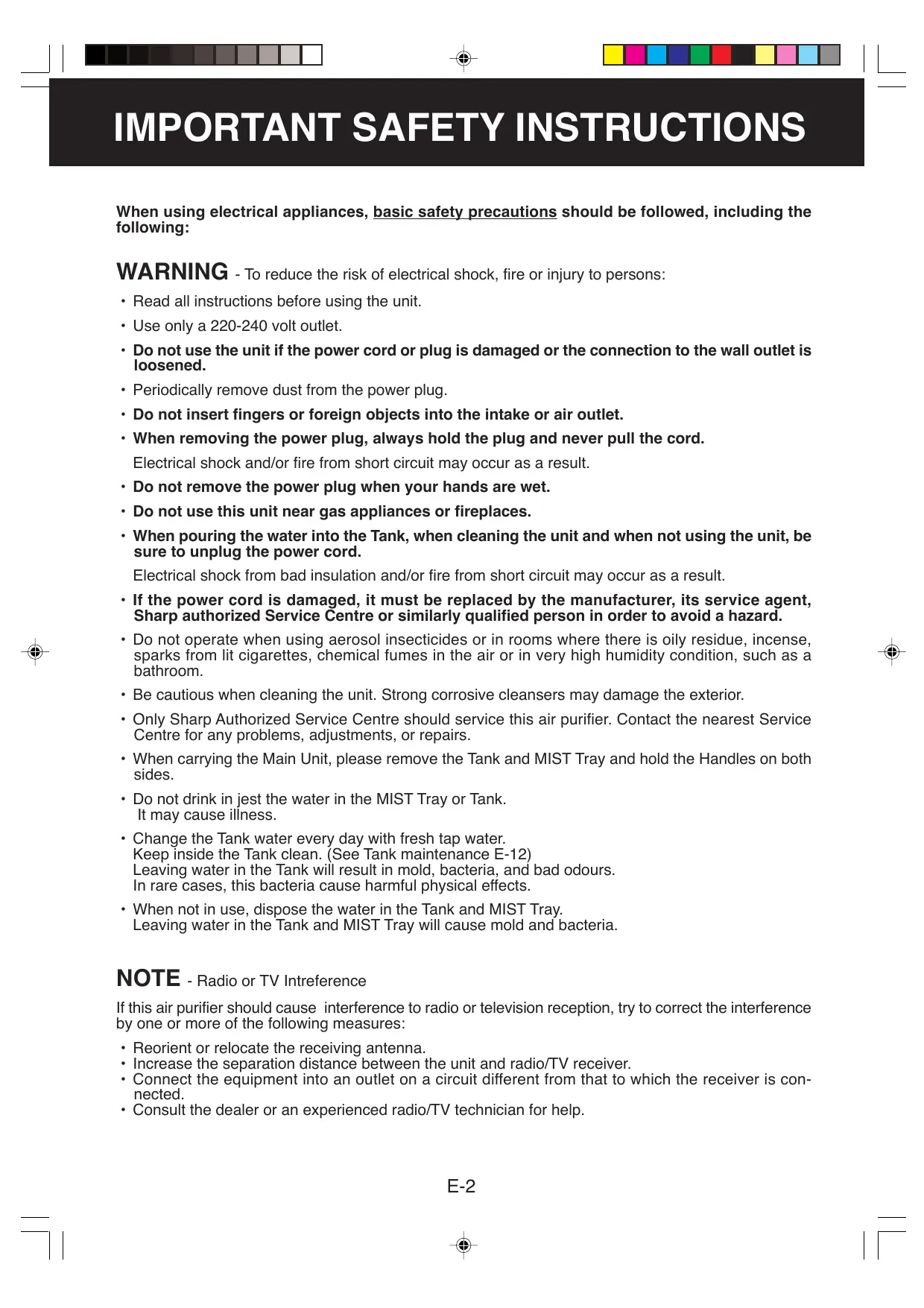 WARNING - To reduce the risk of electrical shock, fire or injury to persons: + Read all instructions before using the unit. Use only a 220-240 volt outlet.