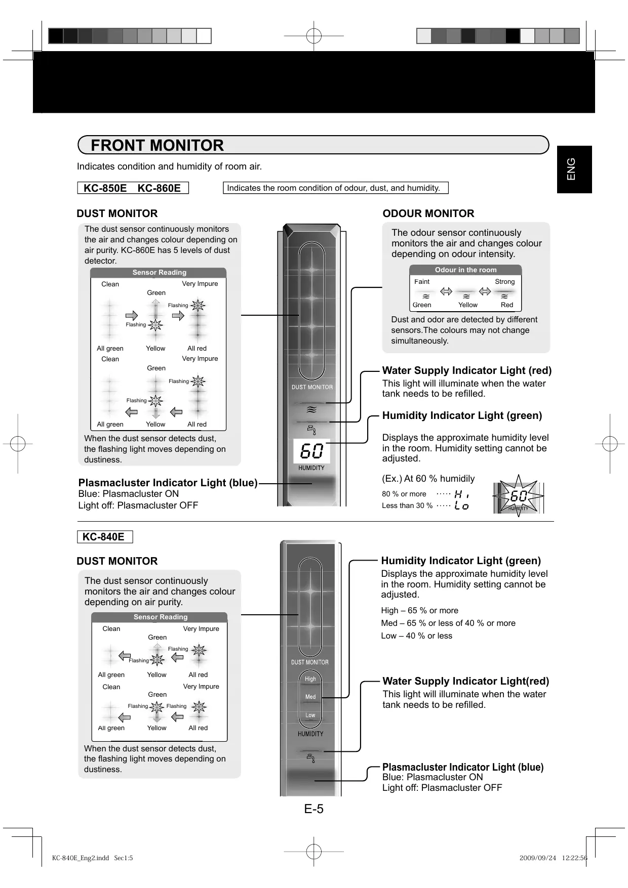 KC-850E KC-860E Indicates the room condition of odour, dust, and humidity.