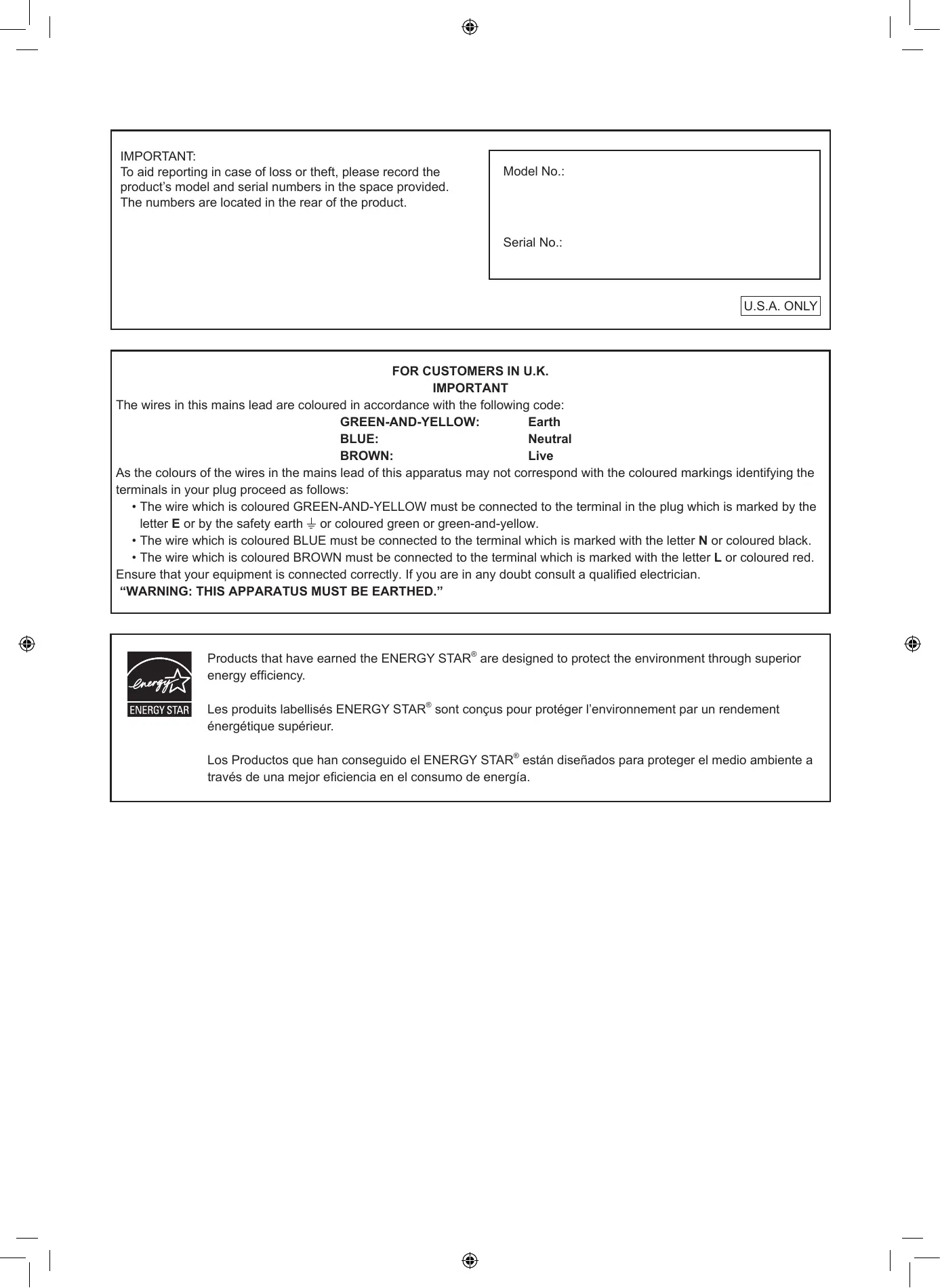 U.S.A. ONLY DEAR SHARP CUSTOMER Thank you for your purchase of a SHARP LCD product. To ensure safety and many years of trouble-free operation of your product, please read the Safety Precautions carefully before using this product.