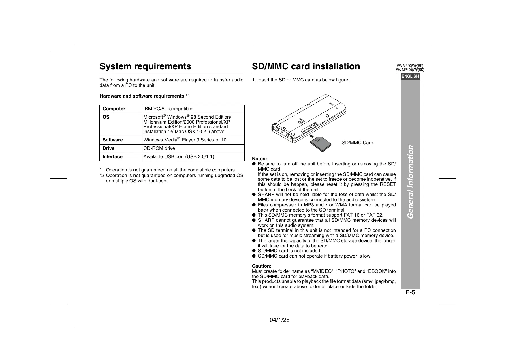 WA-MP400 - CD Player SHARP - Free user manual and instructions