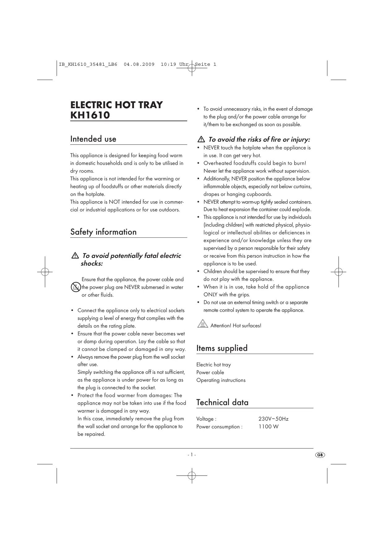 Download the instructions for your Cooking appliance in PDF format for free! Find your manual KH 1610 - SILVERCREST and take your electronic device back in hand. On this page are published all the documents necessary for the use of your device. KH 1610 by SILVERCREST.