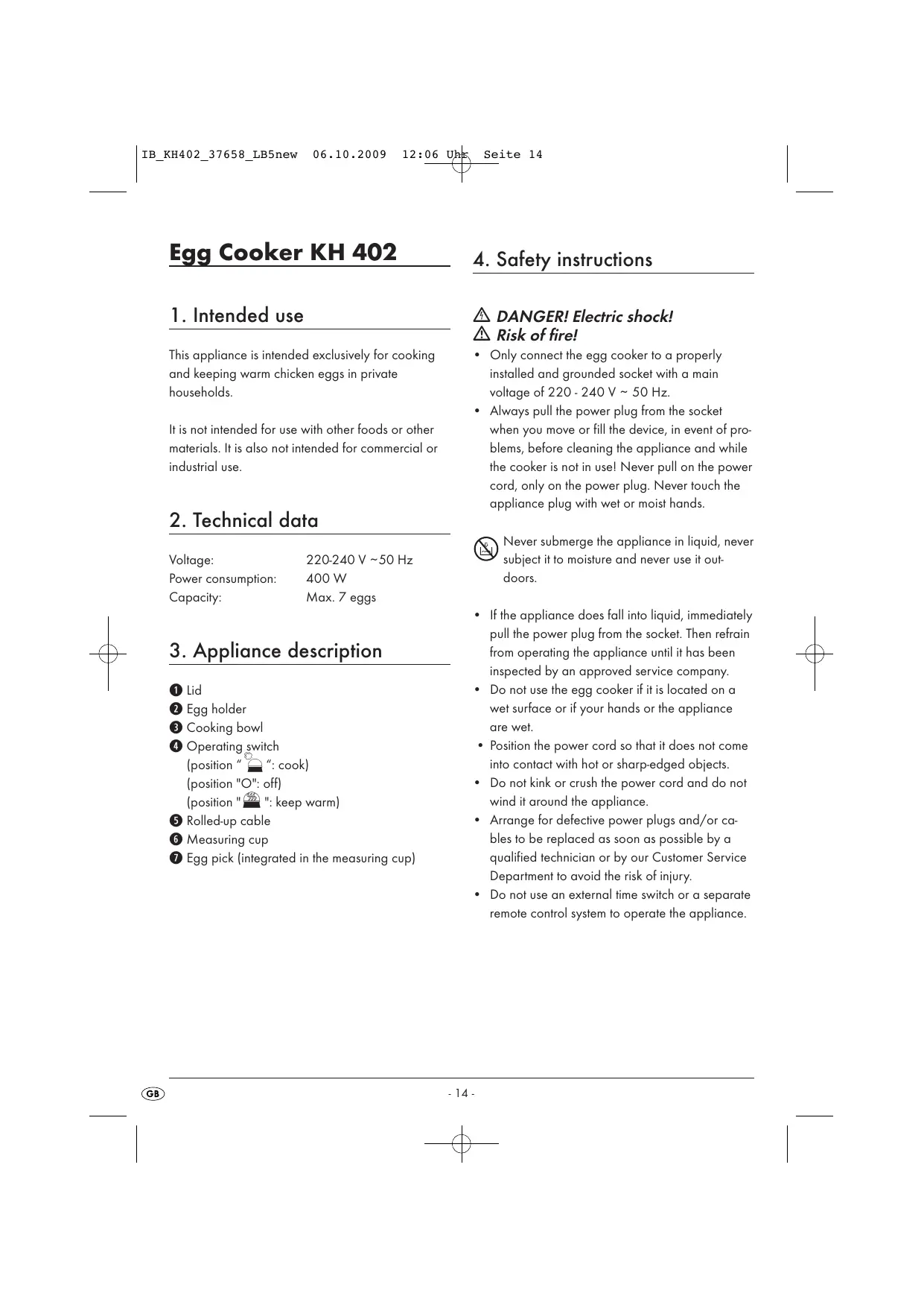 USER MANUAL KH 402 EGG COOKER SILVERCREST