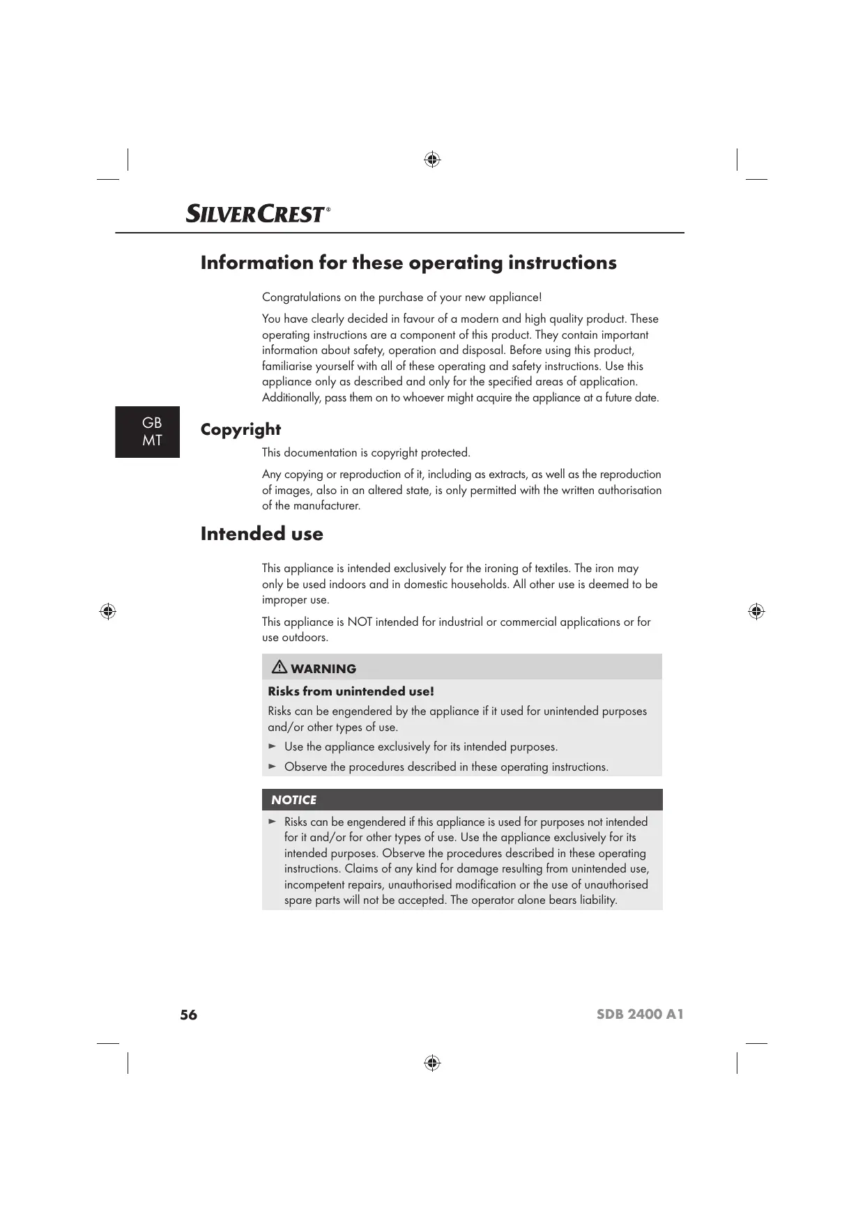 Find the device manual for free SDB 2400 A1 SILVERCREST in PDF.