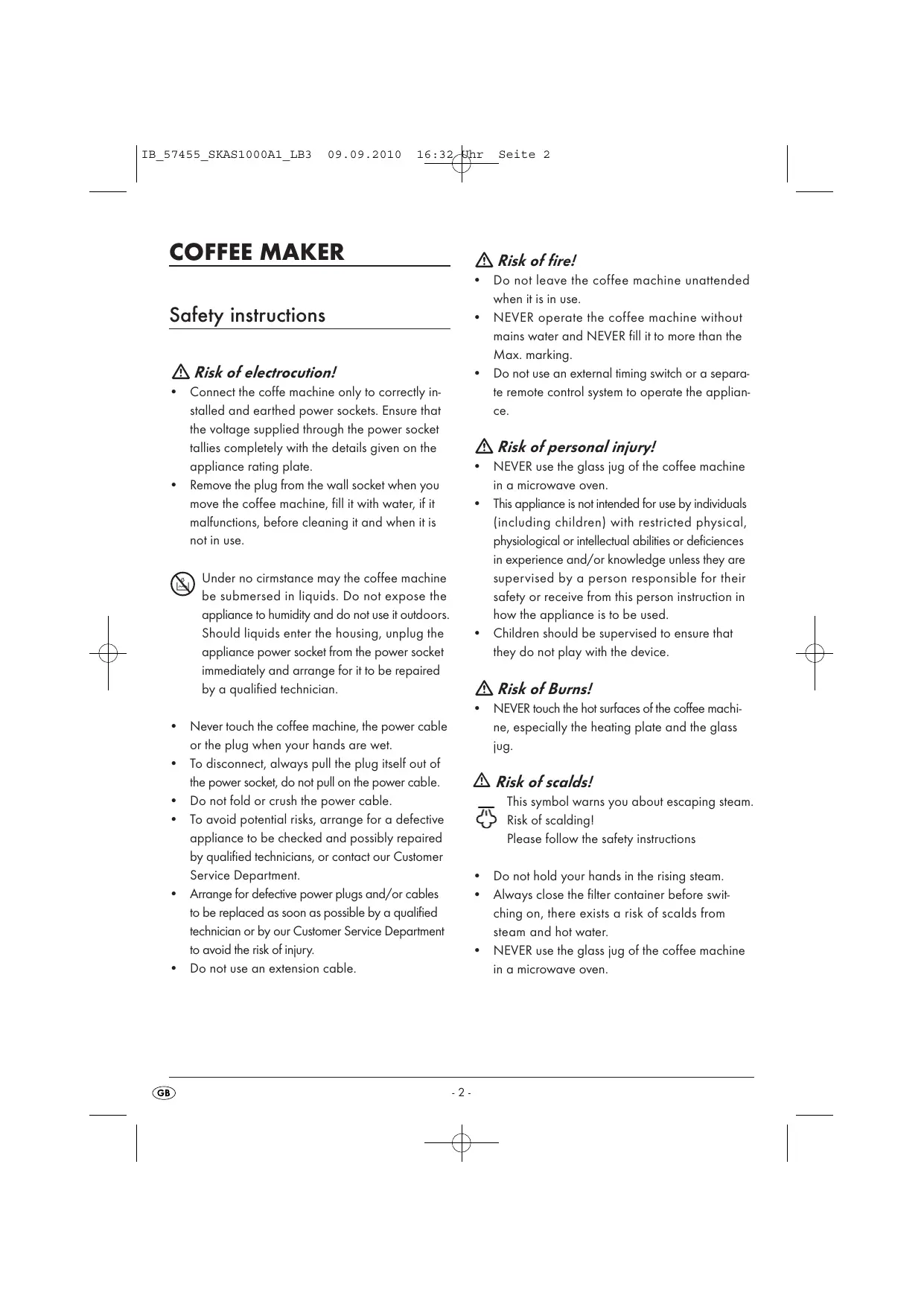 USER MANUAL SKAS 1000 A1 COFFEE MAKER SILVERCREST