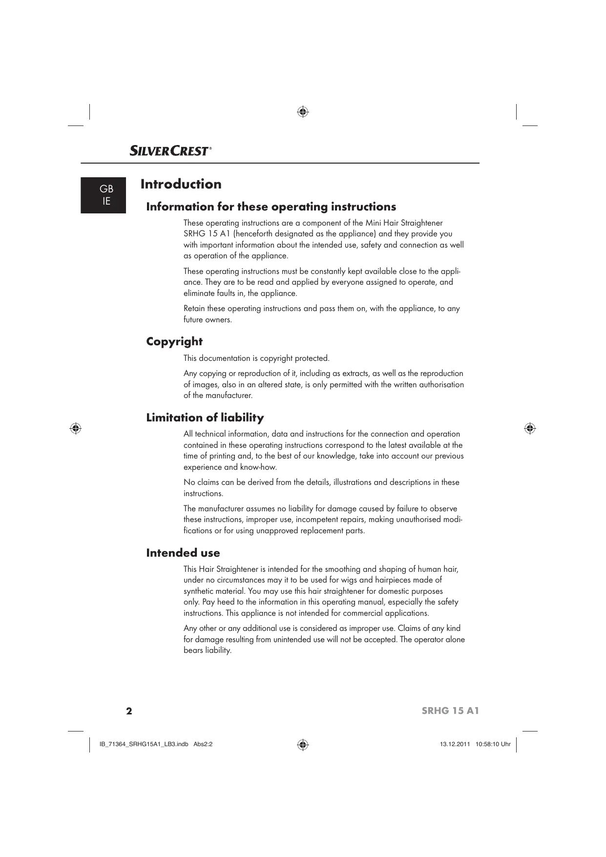 USER MANUAL SRHG 15 A1 SILVERCREST