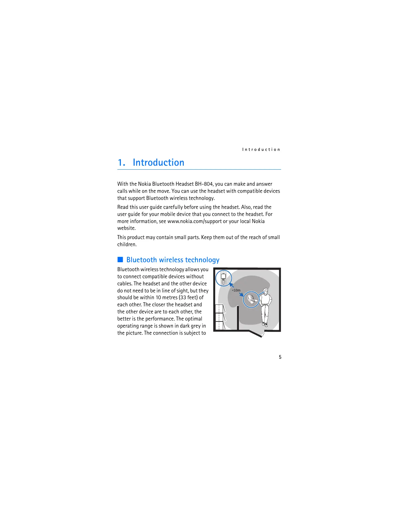 With the Nokia Bluetooth Headset BH-804, you can make and answer calls while on the move. You can use the headset with compatible devices that support Bluetooth wireless technology.