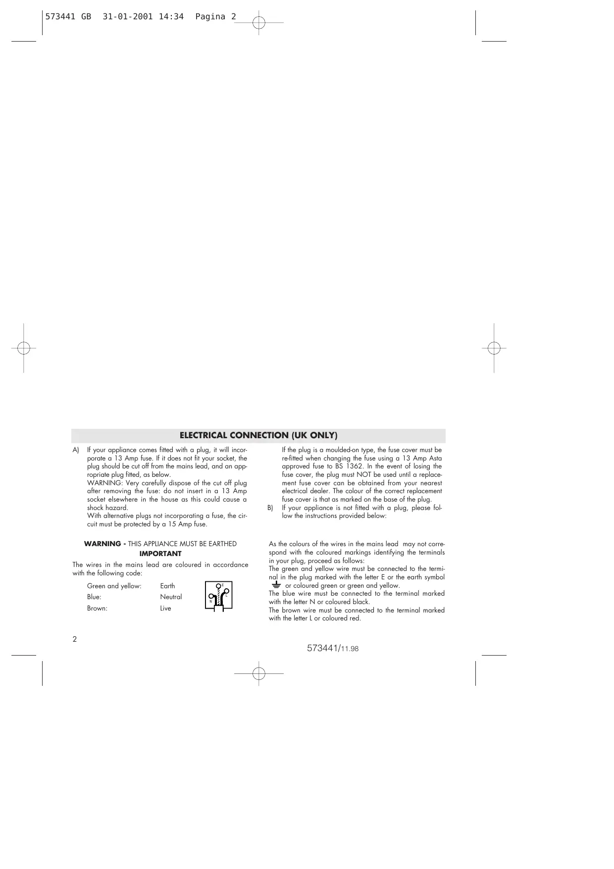 B) If your appliance is not fitted with a plug, please follow the instructions provided below: