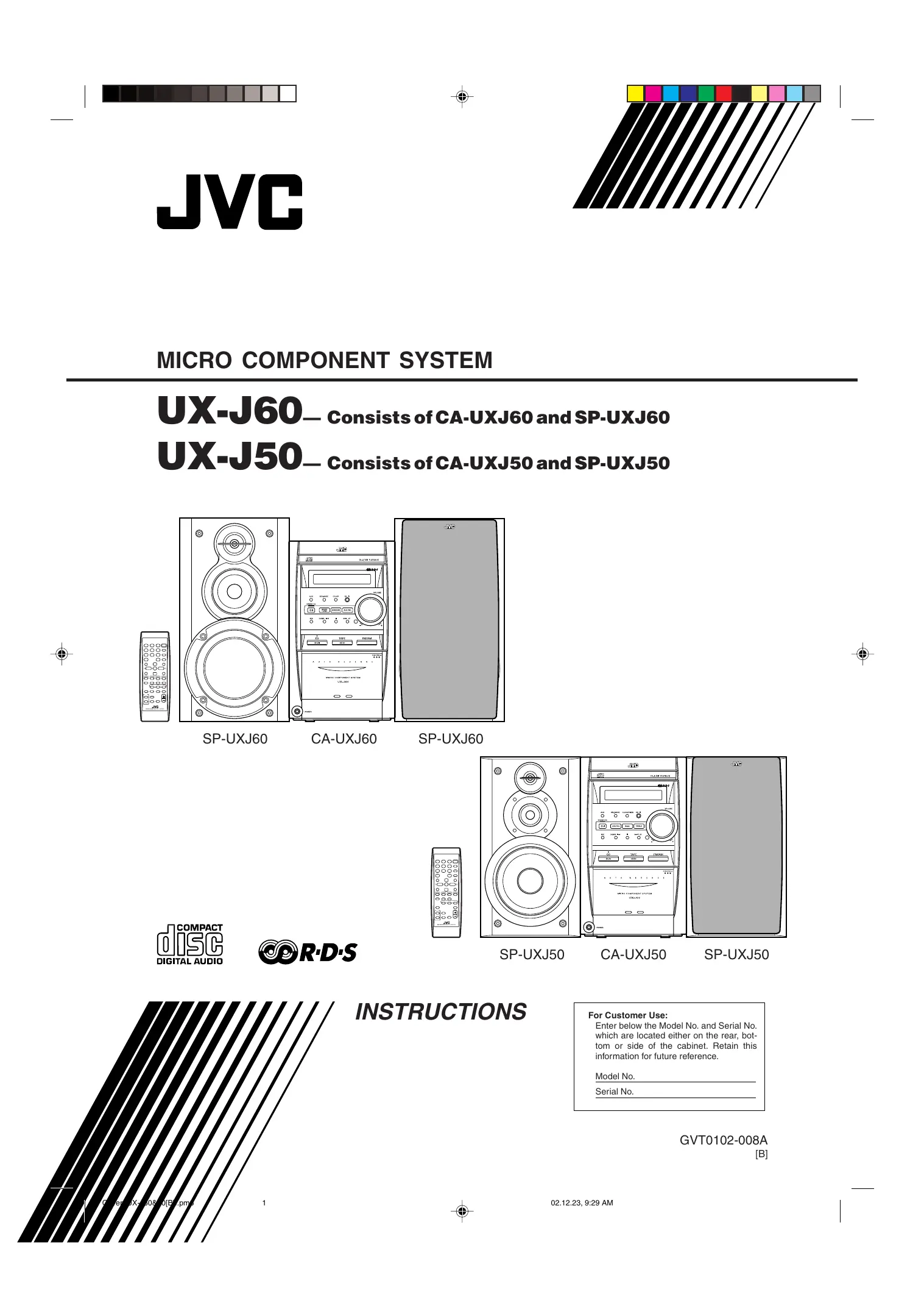 Download the instructions for your Compact audio system in PDF format for free! Find your manual UX-J60 - JVC and take your electronic device back in hand. On this page are published all the documents necessary for the use of your device. UX-J60 by JVC.