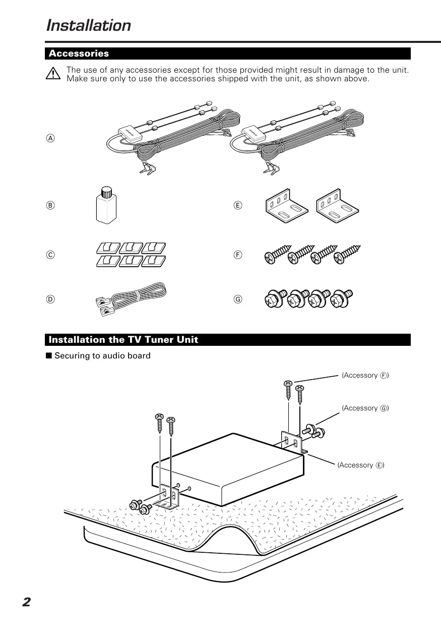 Installation the TV Tuner Unit ■ Securing to audio board (Accessory F) (Accessory G) (Accessory E)