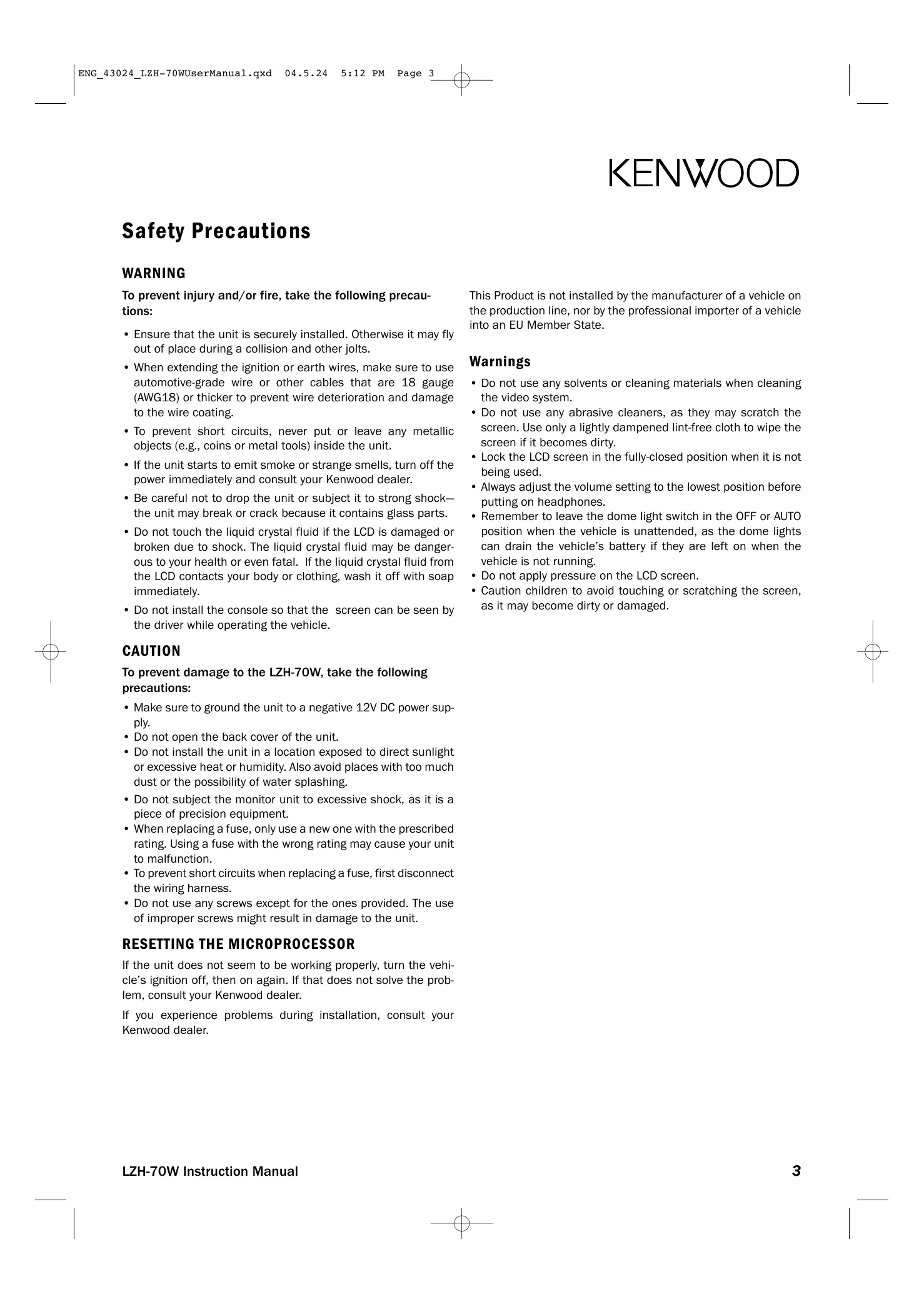 LZH-70W - Embedded electronics KENWOOD - Free user manual and instructions