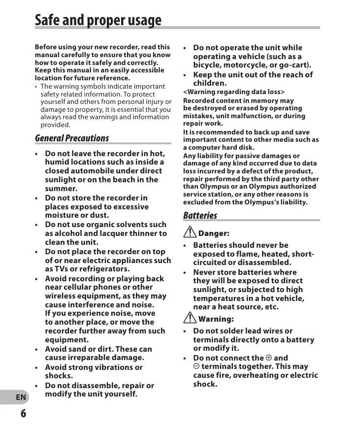DETAILED INSTRUCTION Thank you for purchasing an Olympus Digital Voice Recorder. Please read these instructions for information about using the product correctly and safely. Keep the instructions handy for future reference.
