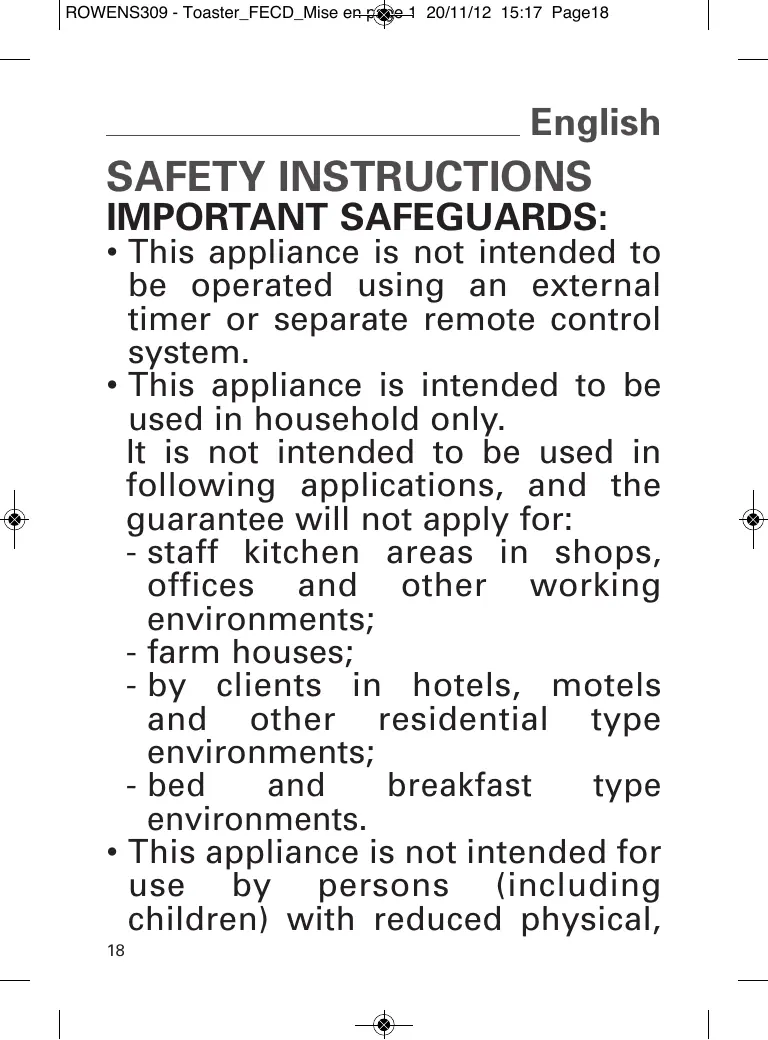 - Close supervision is necessary when the toaster is used by or near children or certain disabled persons who are not familiar with these instructions and should only use this toaster under surveillance of a responsible adult.
