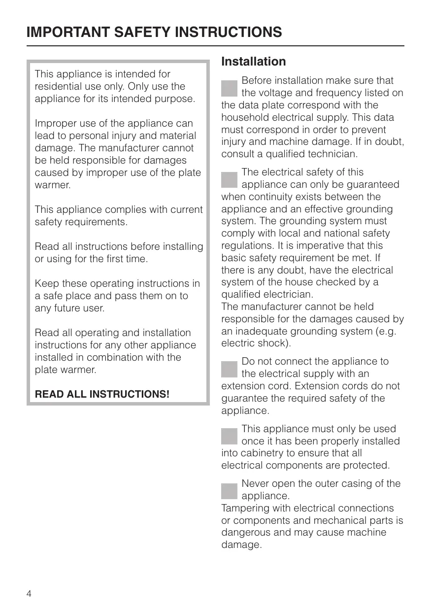 IMPORTANT SAFETY INSTRUCTIONS 4