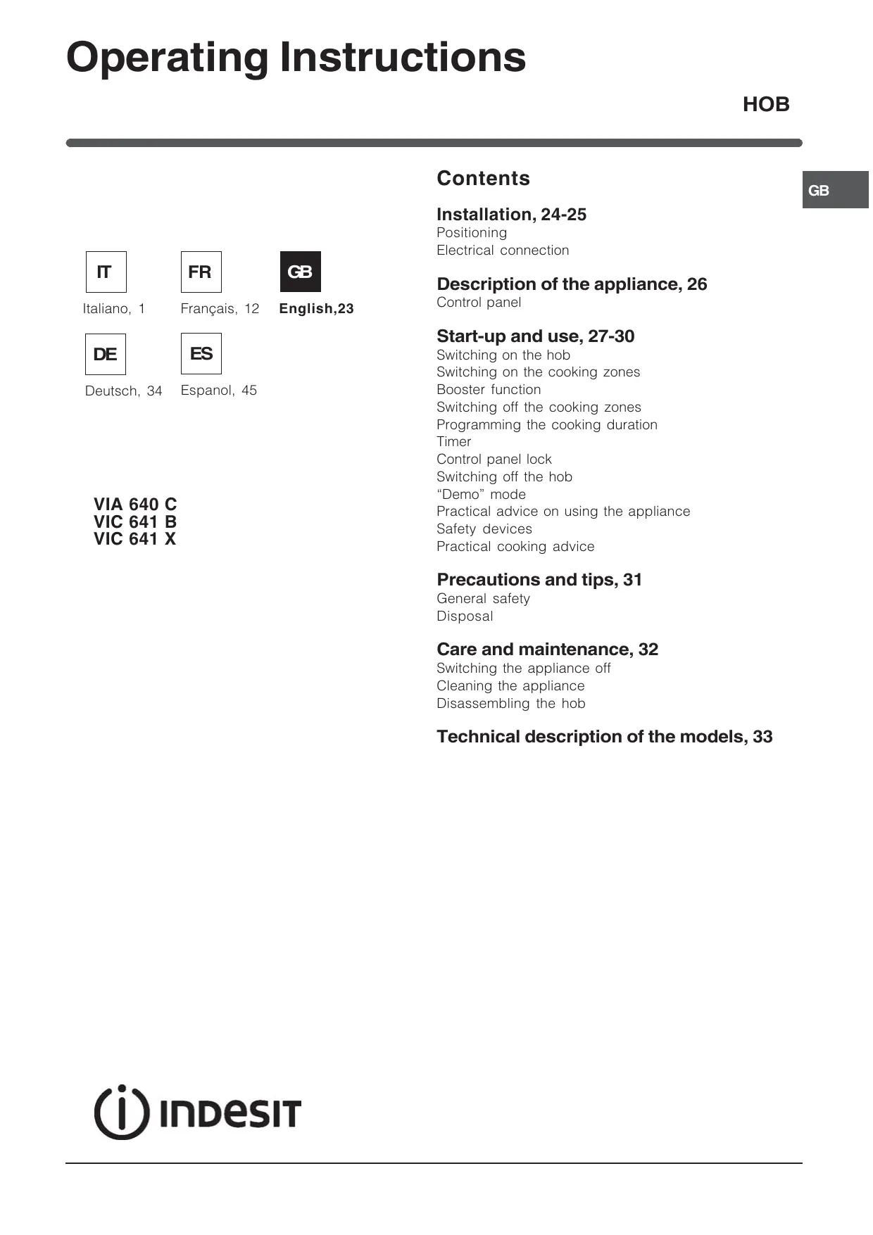 VIA 641 B - Hob INDESIT - Free user manual and instructions