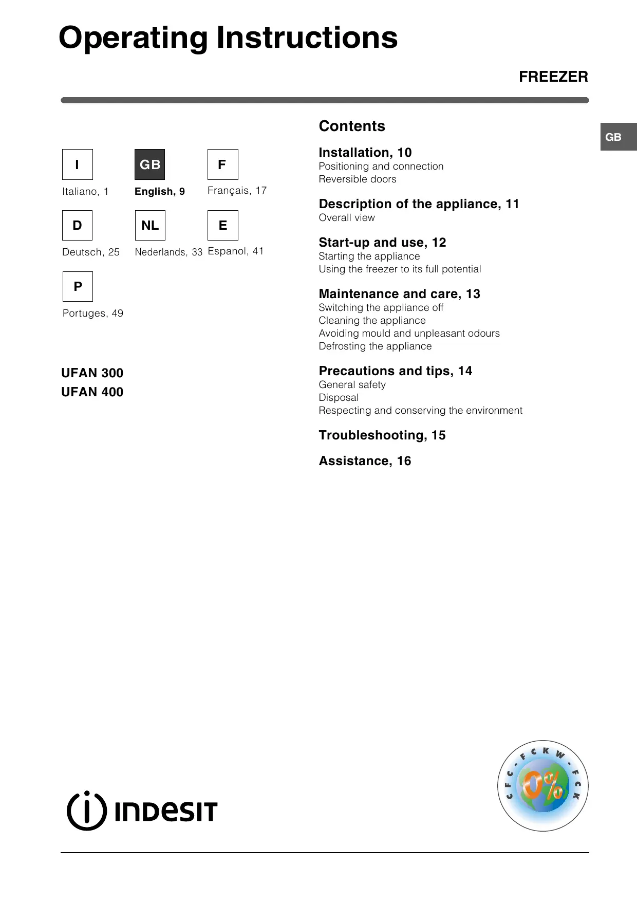 UFAN300 - Freezer INDESIT - Free user manual and instructions