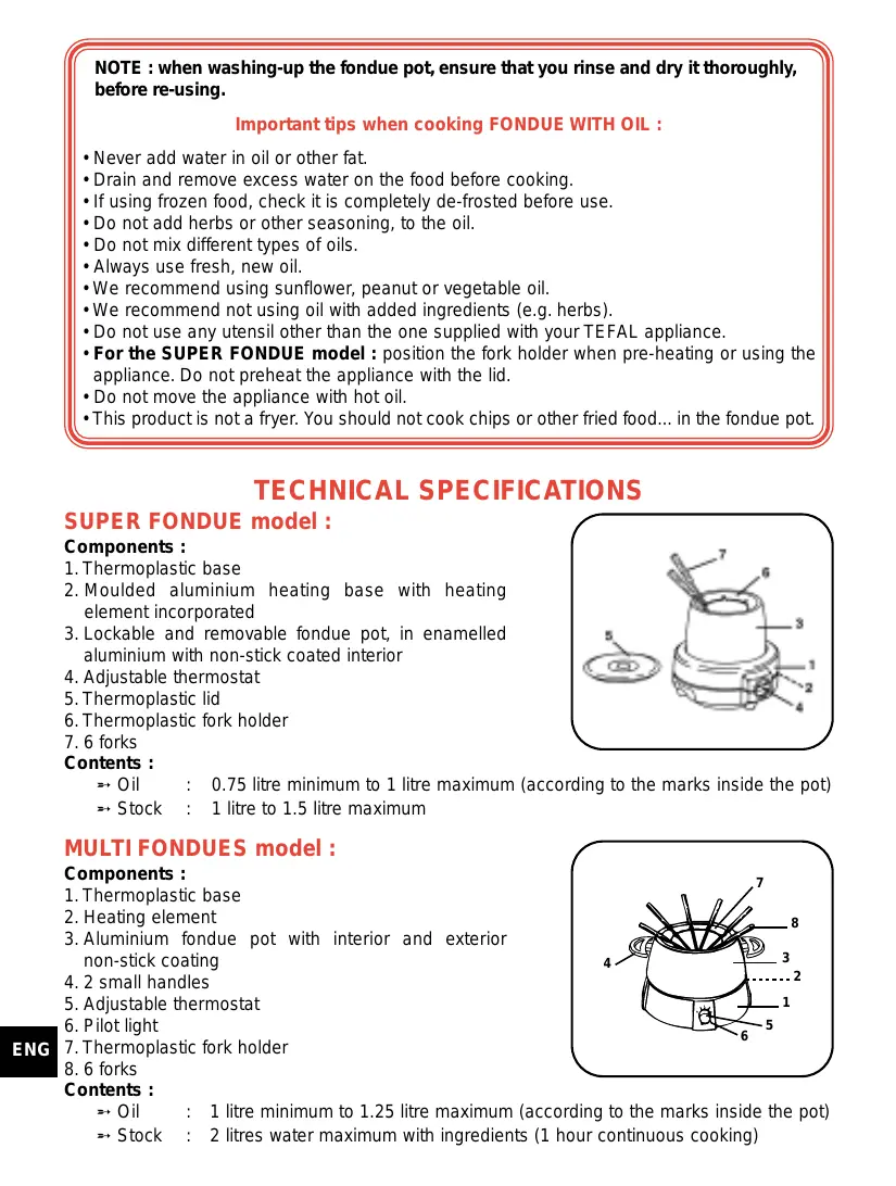 F à NOTE : when washing-up the fondue pot, ensure that you rinse and dry itthoroughly, before re-using.