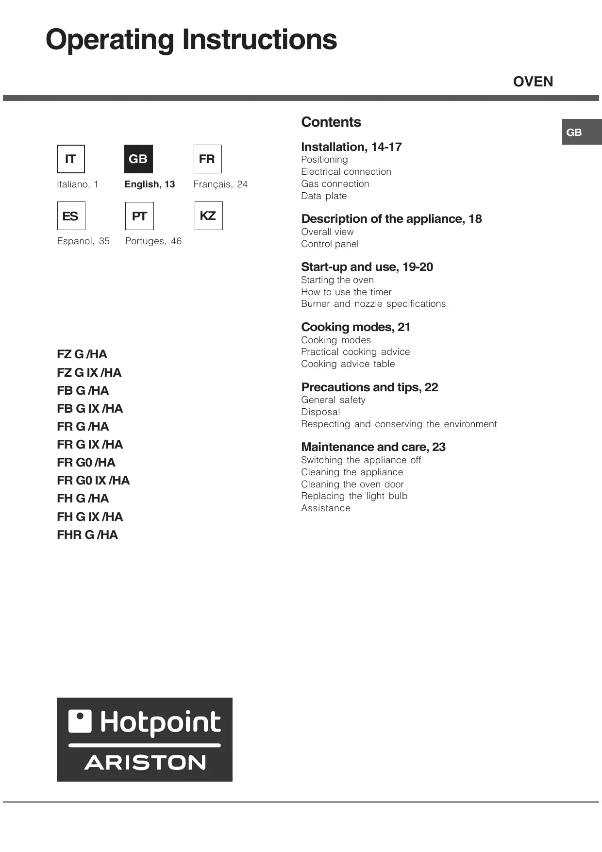 USER MANUAL FH G IX/HA HOTPOINT