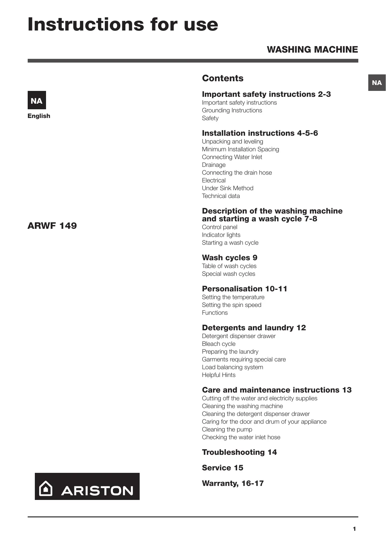 Download the instructions for your Washing machine in PDF format for free! Find your manual ARWF 149 S - HOTPOINT and take your electronic device back in hand. On this page are published all the documents necessary for the use of your device. ARWF 149 S by HOTPOINT.