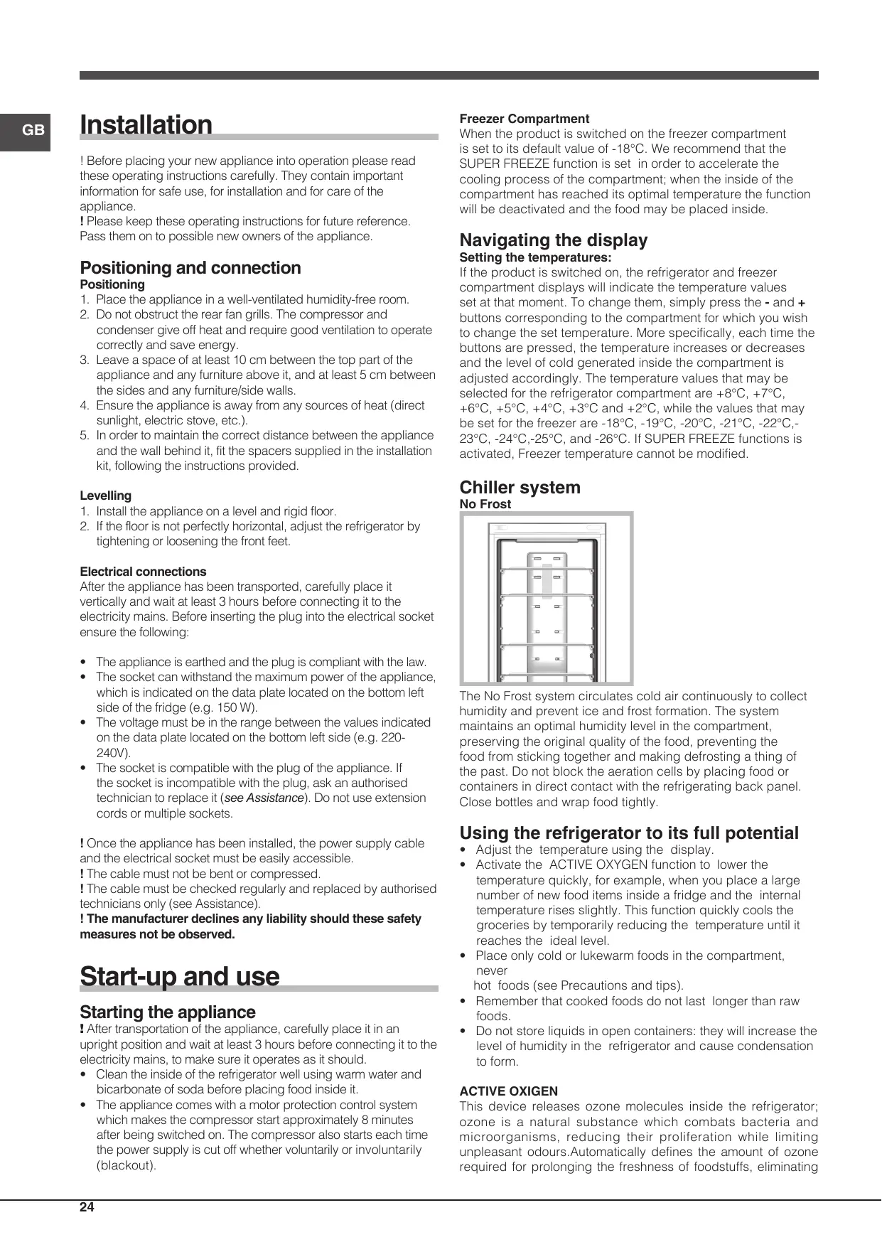 ! After transportation of the appliance, carefully place it in an upright position and wait at least 3 hours before connecting it to the electricity mains, to make sure it operates as it should.