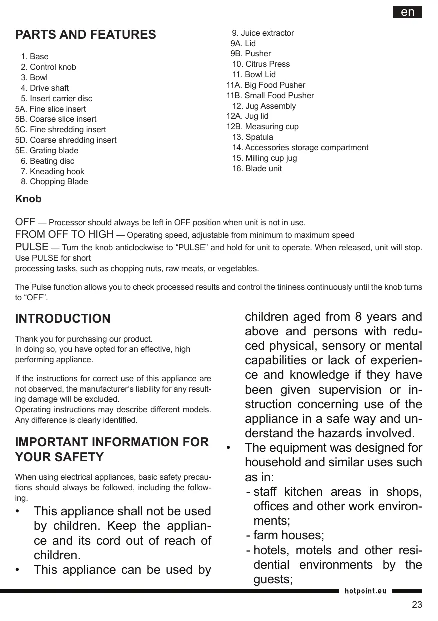 Download the instructions for your Food processor in PDF format for free! Find your manual FP 1009 AC0 - HOTPOINT and take your electronic device back in hand. On this page are published all the documents necessary for the use of your device. FP 1009 AC0 by HOTPOINT.