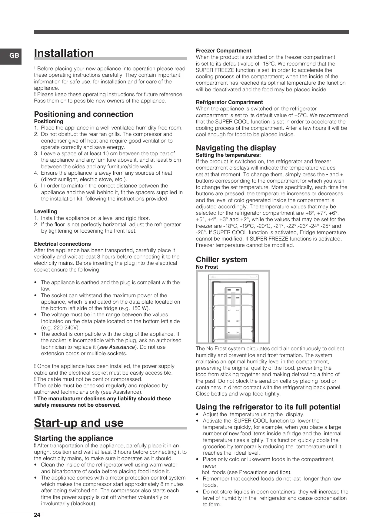 - Do not fill the appliance with too much food: cold air must circulate freely for food to be preserved properly. If circulation is impeded, the compressor will work continuously.