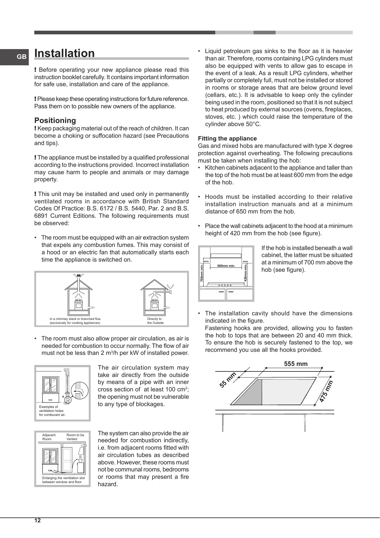 {This unit may be installed and used only in permanently ventilated rooms in accordance with British Standard Codes Of Practice: B.S. 6172 / B.S. 5440, Par. 2 and BS. 6891 Current Editions. The following requirements must be observed: